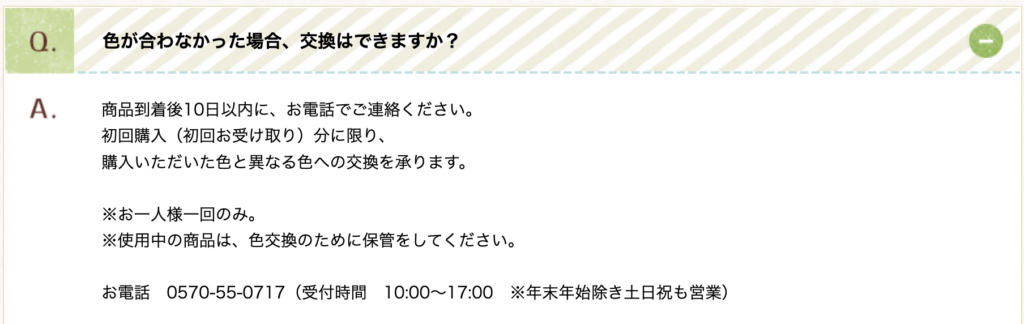 ただ、色が合わないと使い続けにくいため、10日間色交換保証や返金保証の条件もあわせて見ておきたいです。